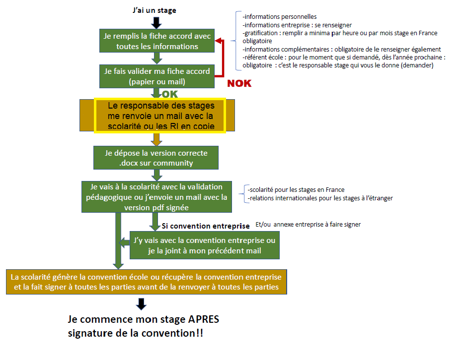 3. si tout est OK (!!!remplir tous les champs!!!), le responsable des stages répond que c'est bon, avec la scolarité ou RI en copie